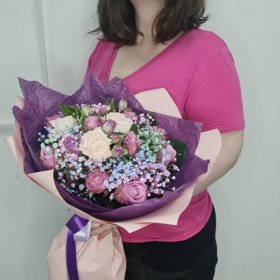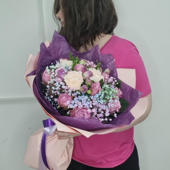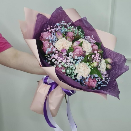 Букет из альстромерии и гипсофилы