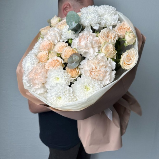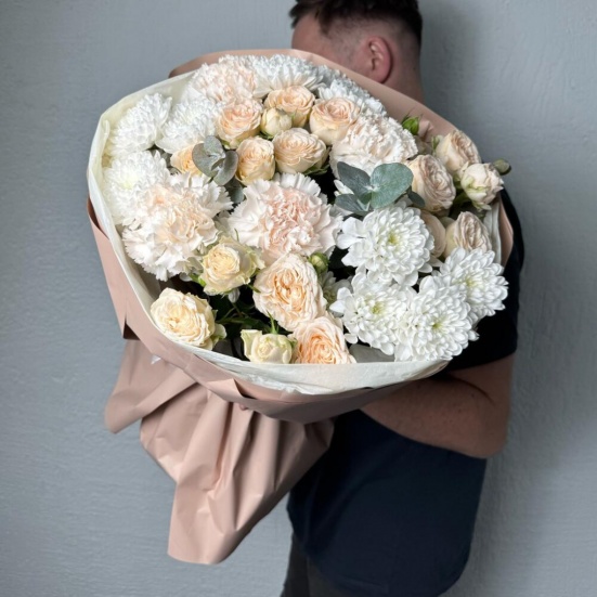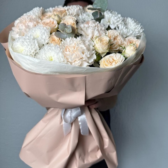 Букет из пионовидных роз и хризантем в Усинске