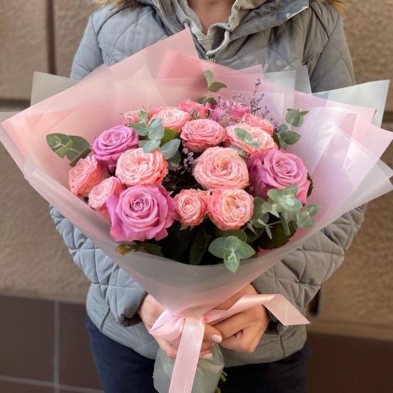Букет «Пионовидных роз с эвкалиптом» в Усинске