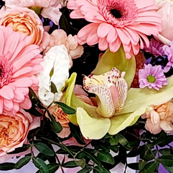 Гербера и орхидея в коробке в Усинске