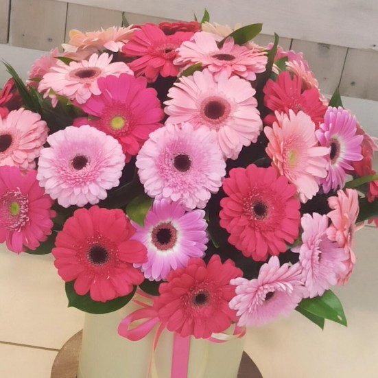 Гербера в шляпной коробке в Усинске